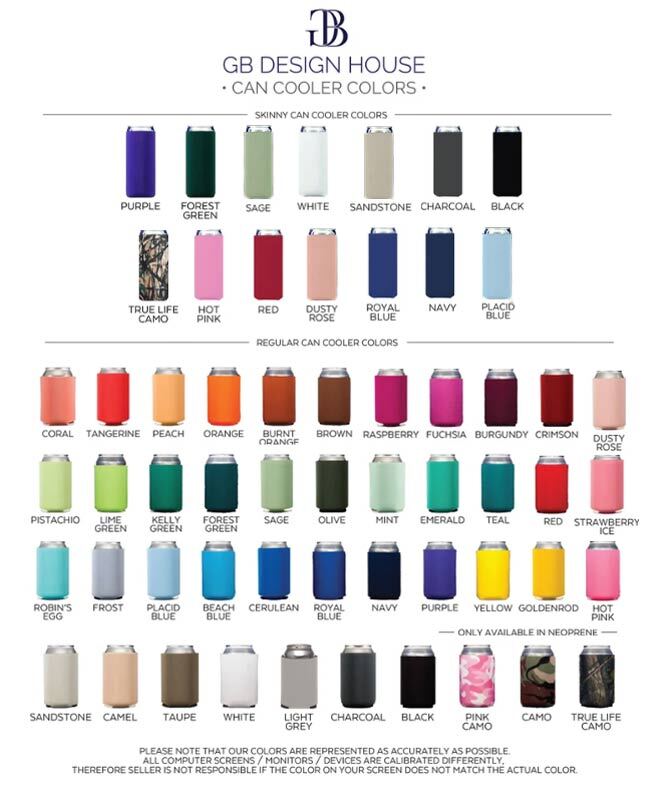Available in both Sponge Foam and Neoprene materials. Pull out all the stops. Watercolor designs, photographs, multi-color images can all be printed on our full color coozies. Printing on both sides and on the bottom available - we suggest a monogram, a heart, a date, or some other surprise on the bottom for when your guests tilt one back! These are digitally printed with a high-quality sublimation process for an upscale look. Metallic inks are unavailable on these items.