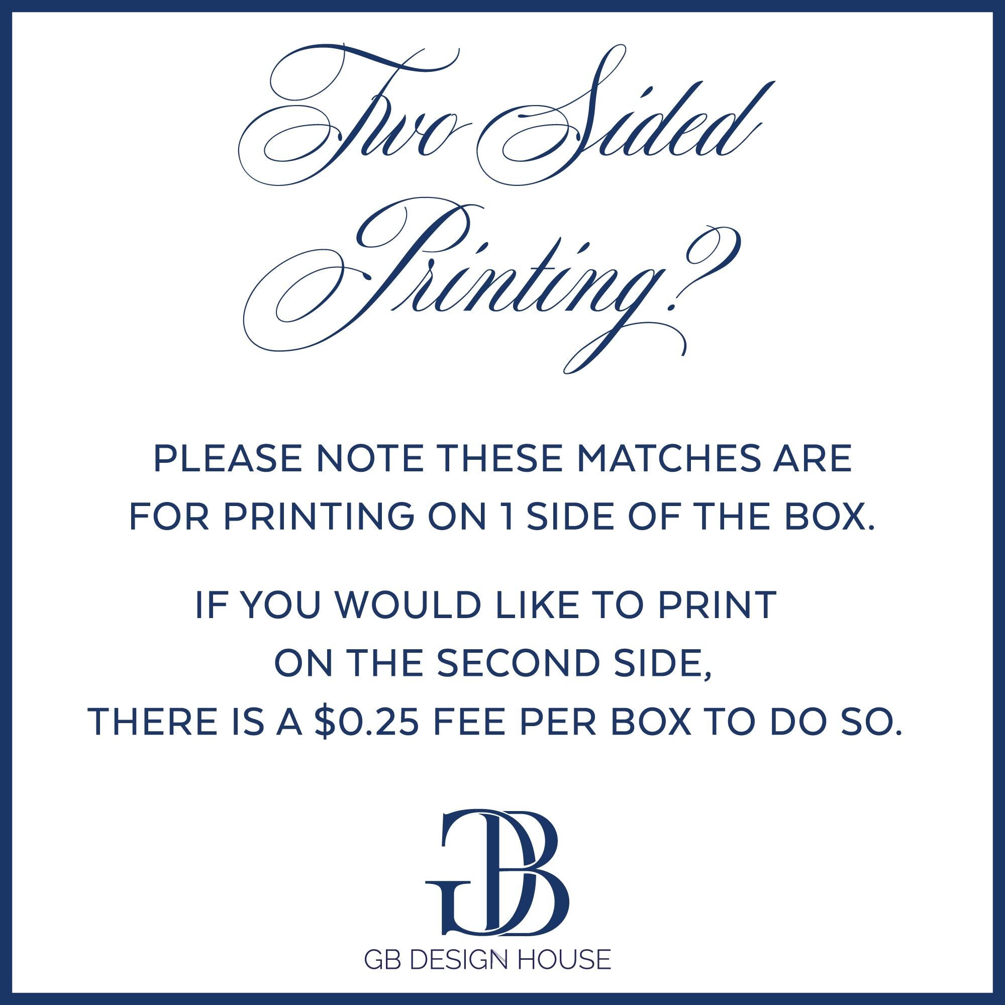 Please note that our prices include printing in one color, unless the listings is for a full color item. There are additional fees to print in two colors and subject to design approval.